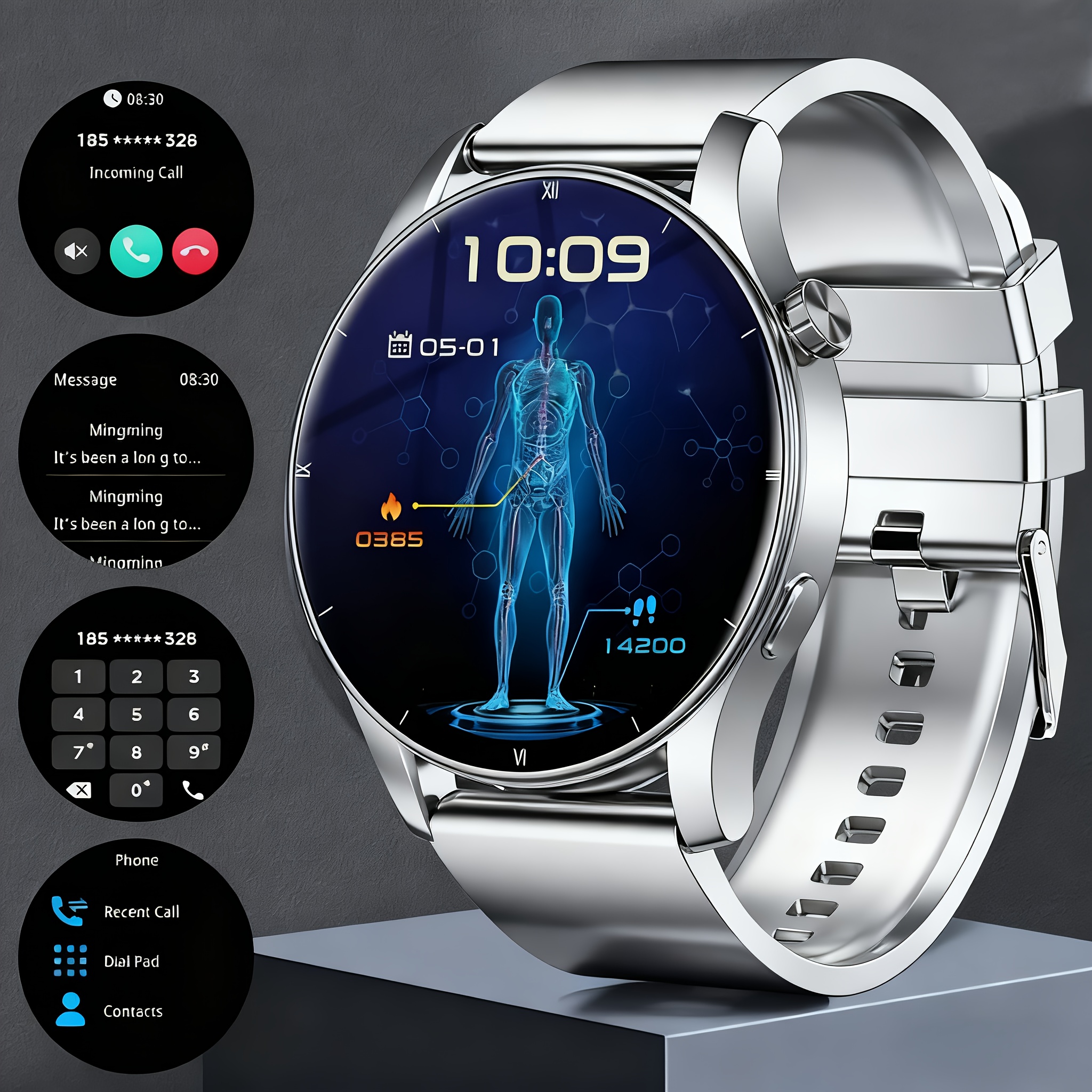 Watch Compatible for /, Smartwatch with 2.01” Round Screen, Step Counter, Sleep Tracker, + Modes, Call/Send/Decline, Music Control, Compatible for Men & Women, Ideal Gift ( 5.3)