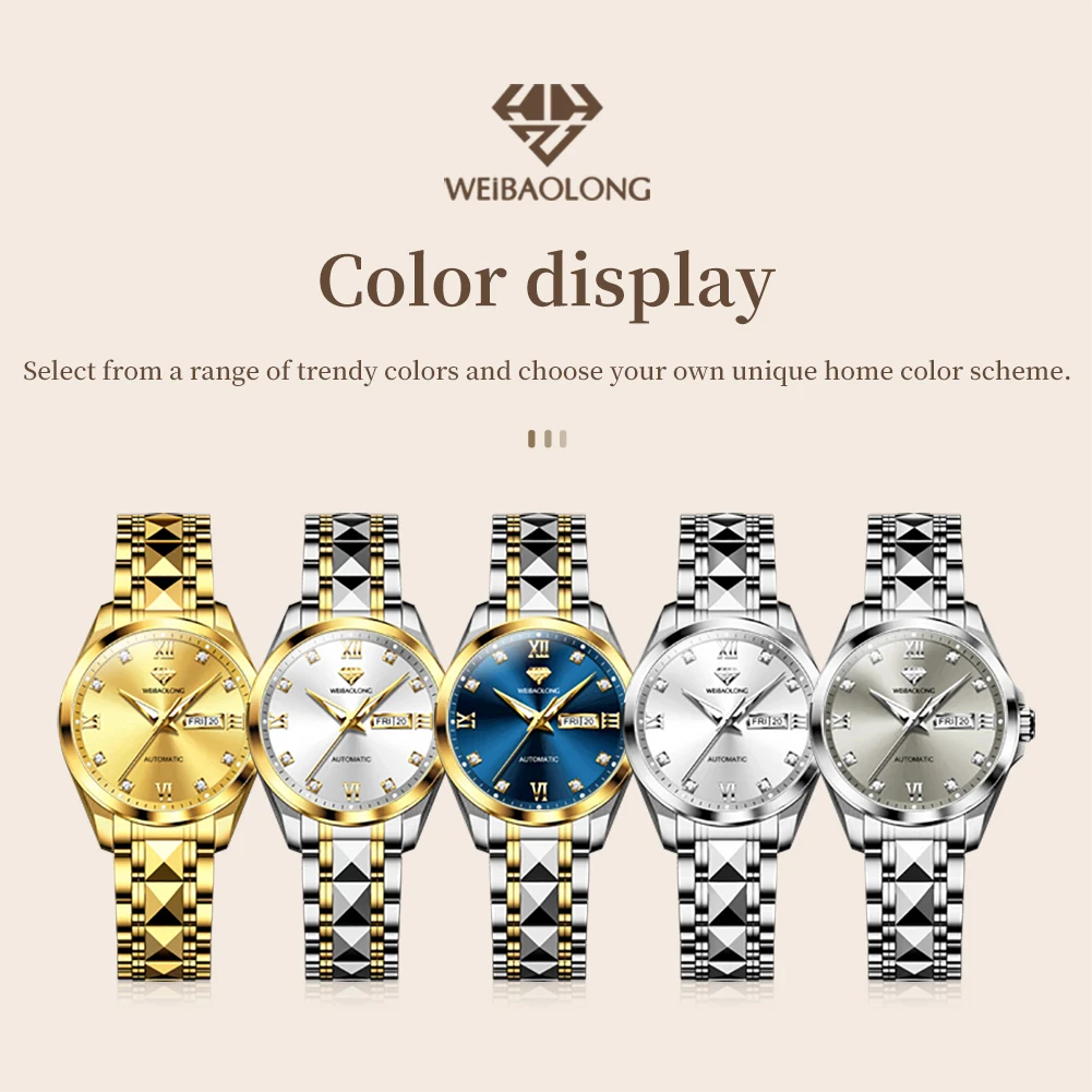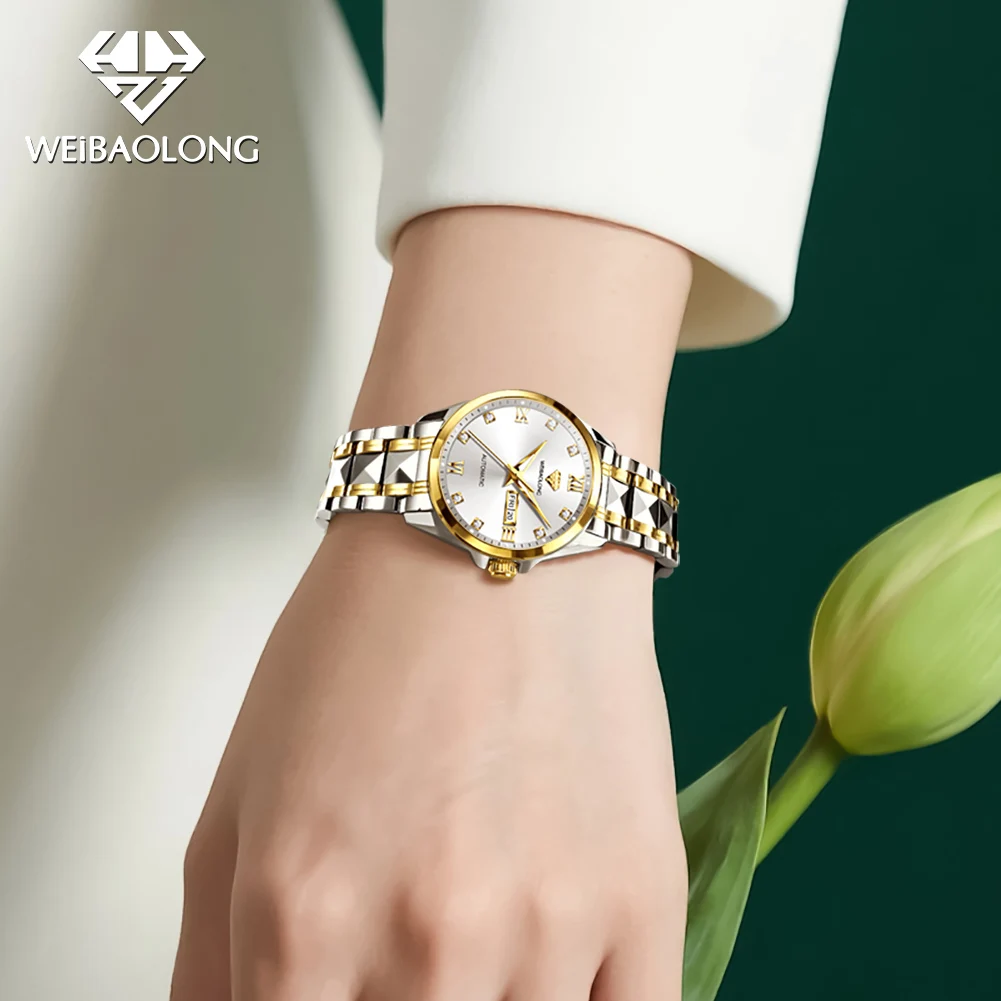 WEIBAOLONG Original Genuine Watch Women Waterproof Calendar High-quality Tungsten steel Automatic Mechanical Hand Clock
