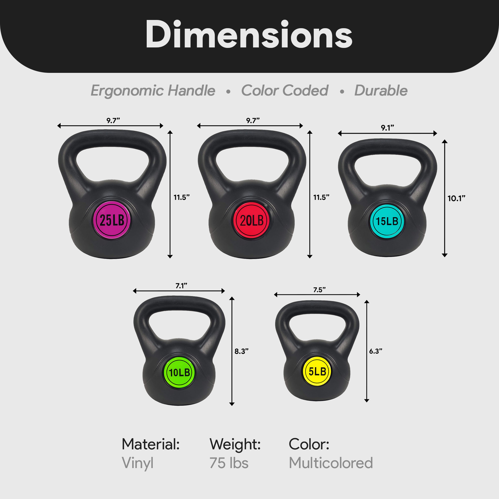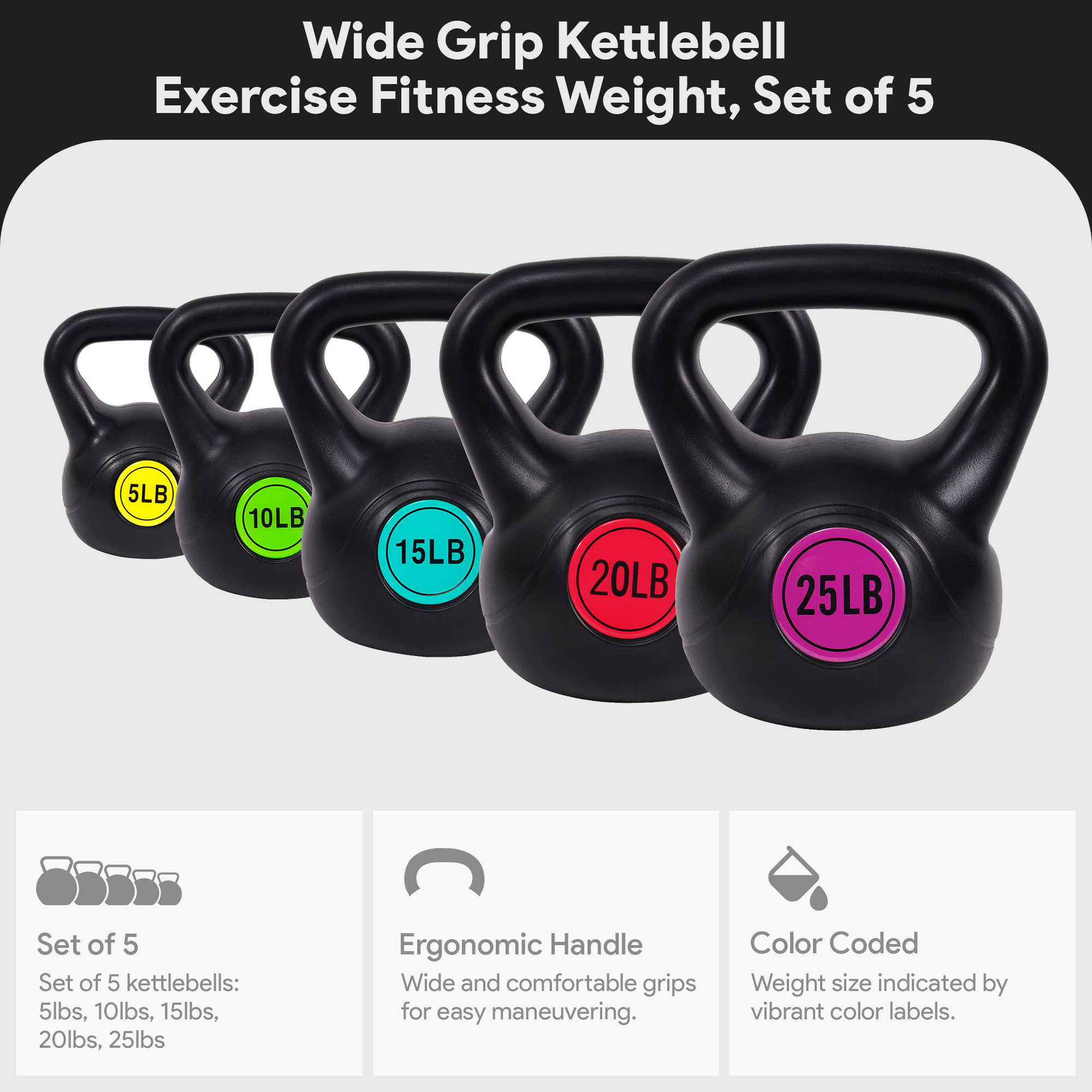 Wide Grip Kettle Bell Strength Training Full Body Exercise Fitness Home Gym Workout Equipment Weight Set, 5, 10, 15, 20, 25 Pound, Black