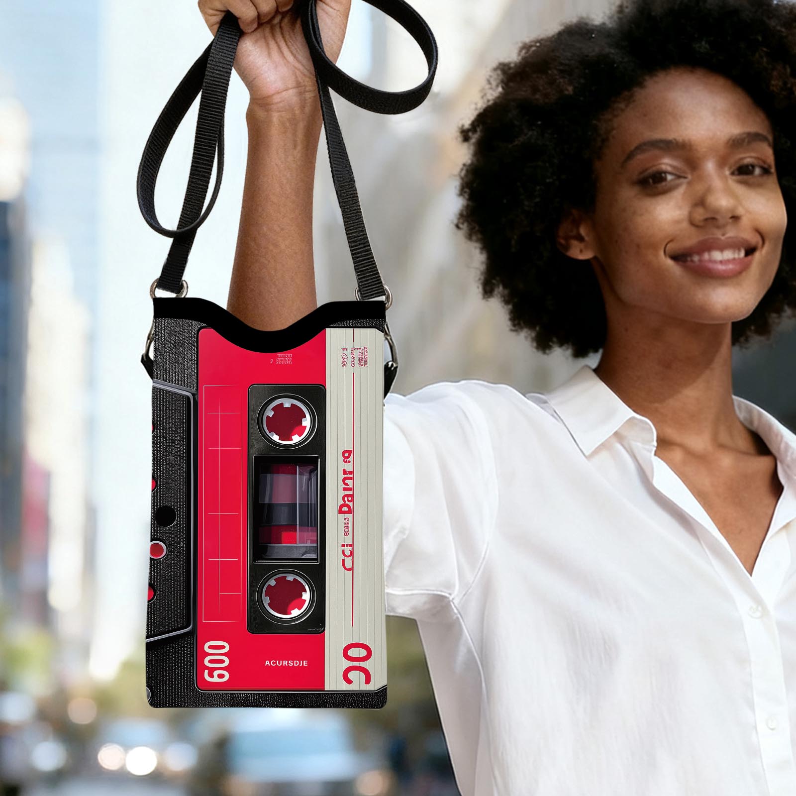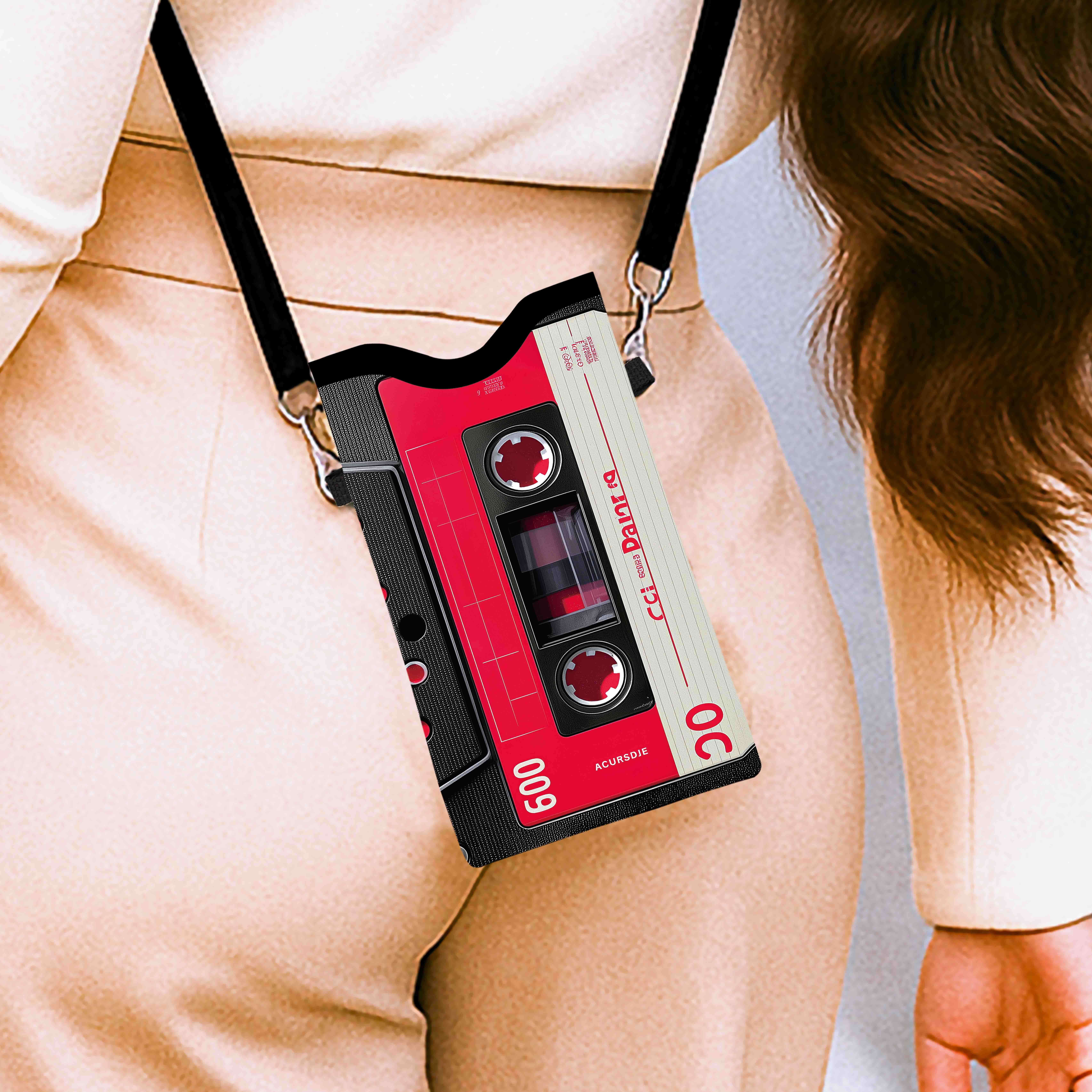 Women’S Retro Cassette Tape Wallet – Vintage 80s/90s Inspired Crossbody Bag with Adjustable Strap, Red & Cassette Design, Golden-Tone Hardware, Zippered Pocket – Durable Synthetic For Music Fans, Everyday Use – Ideal Gift For Women