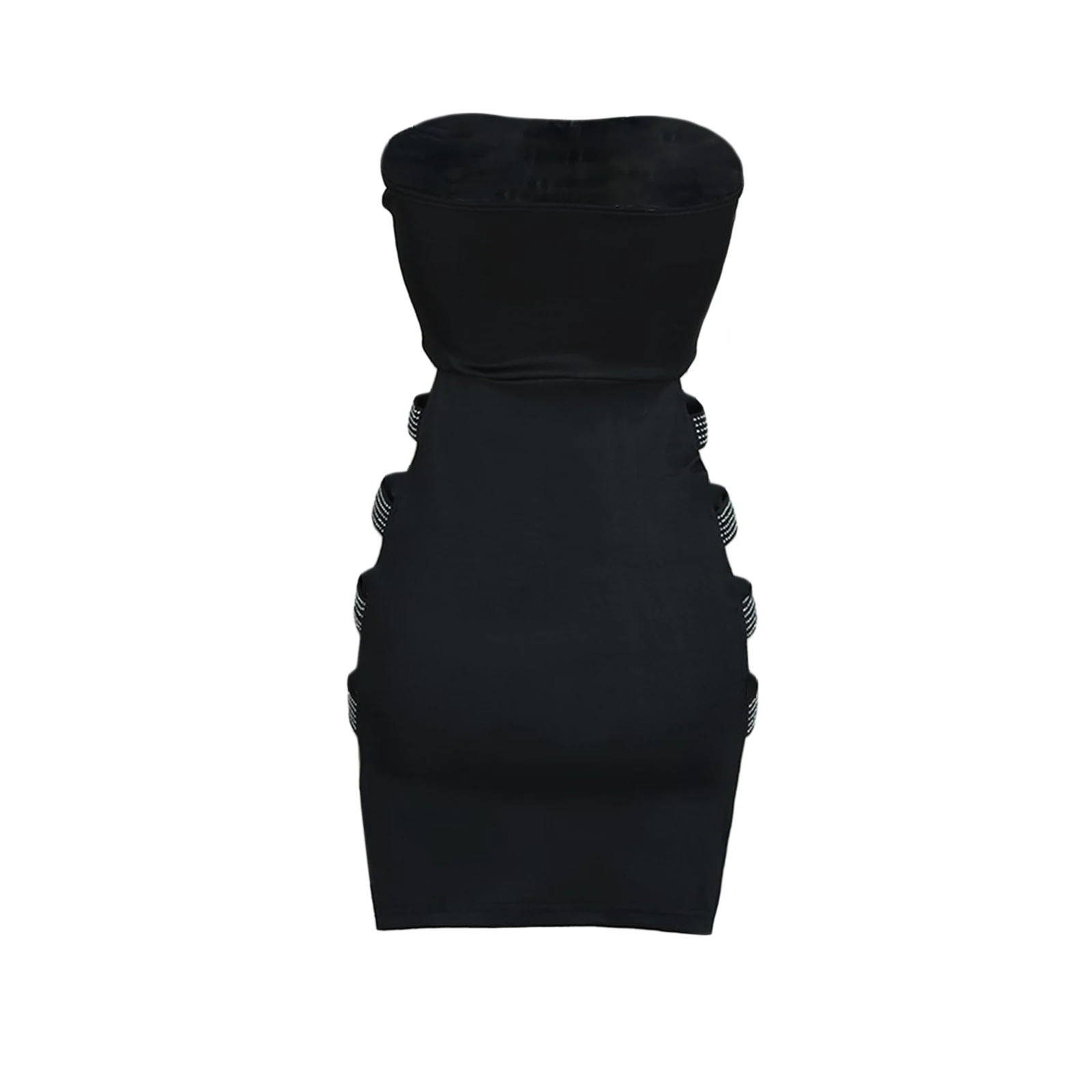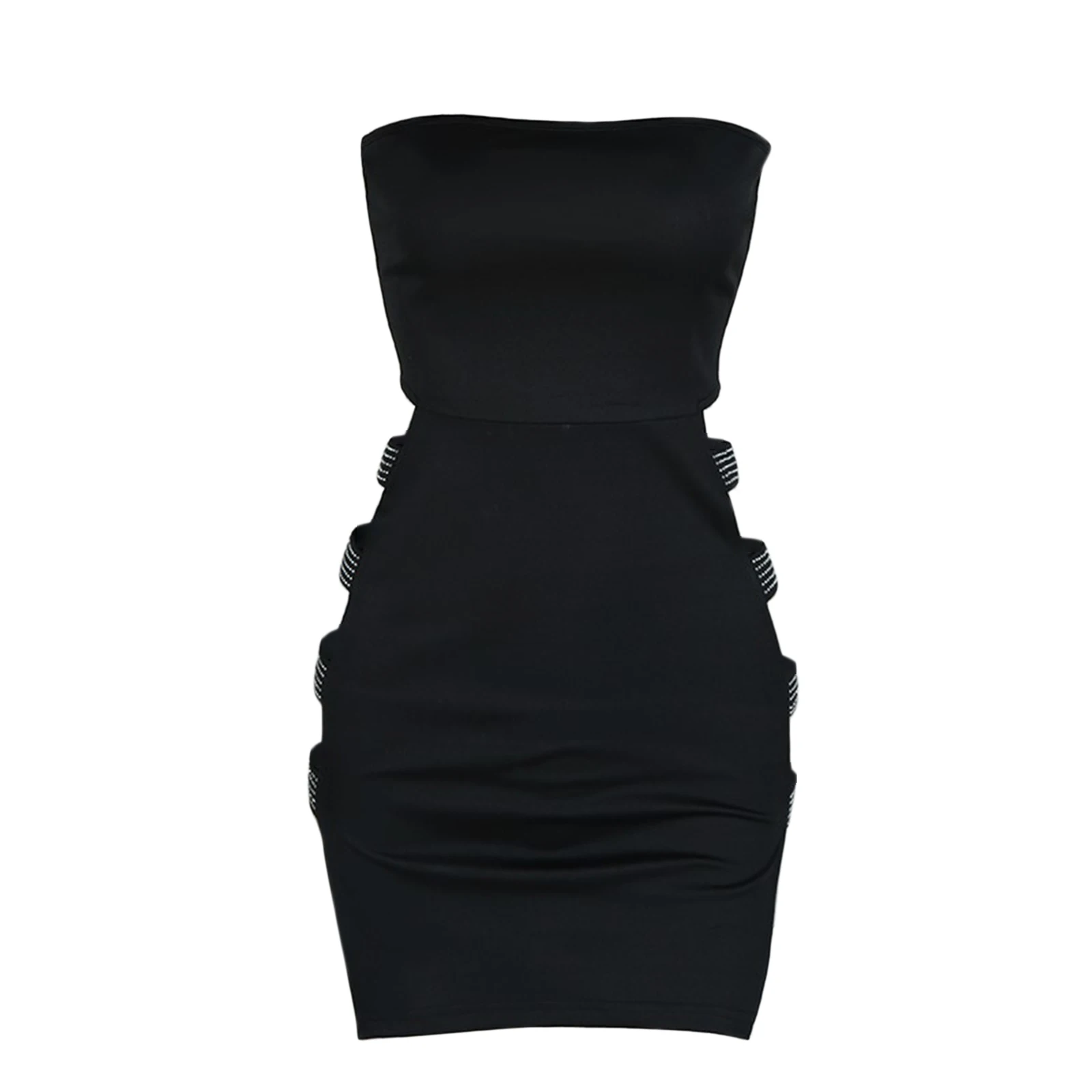 Women’s Sexy Side Hollowed Out Skinny Rhinestone Ladder Cut Out Bandeau Bodycon Slim Fit Short Mini Pencil Tube Dress