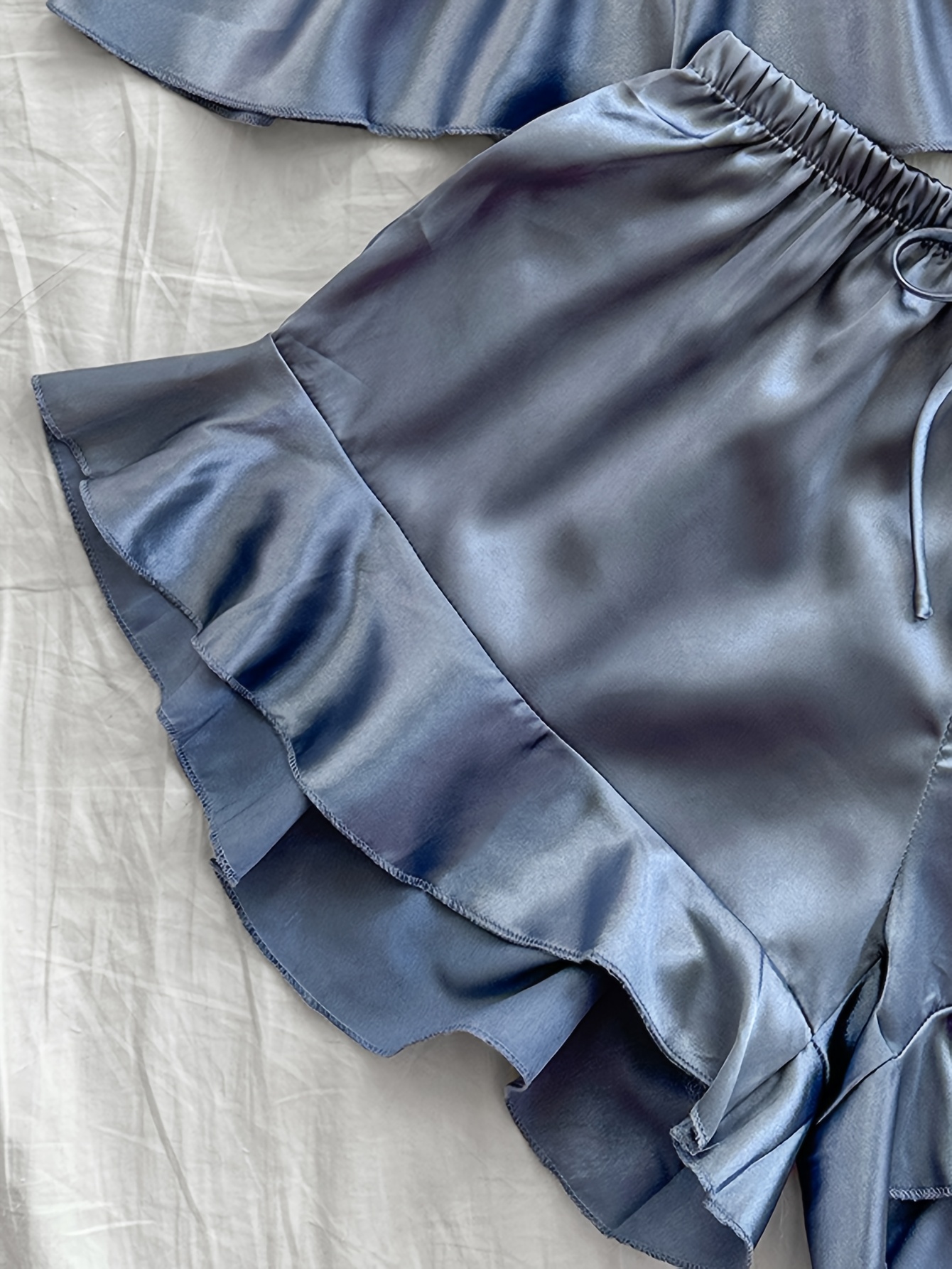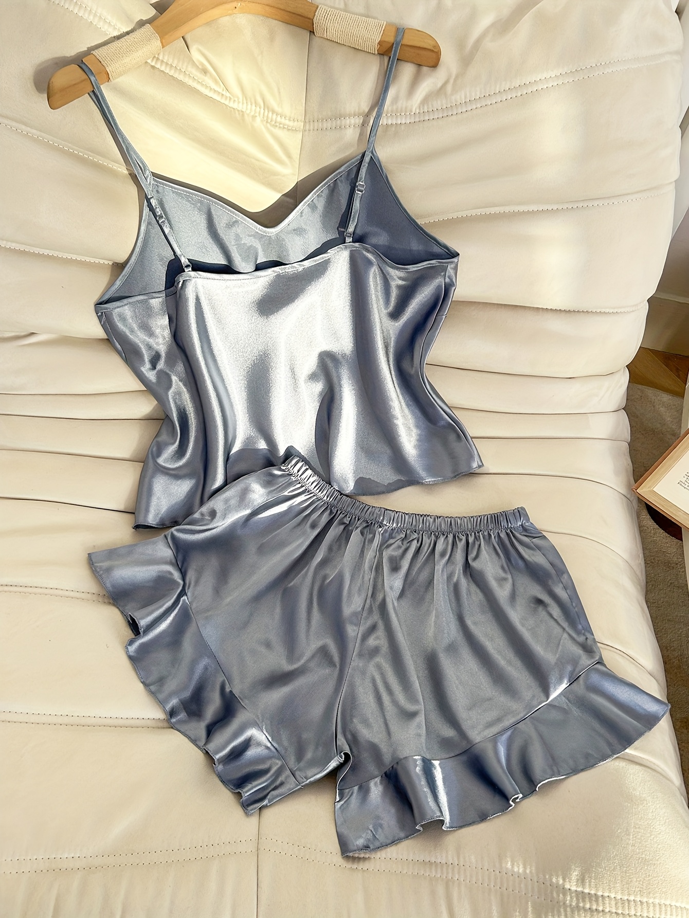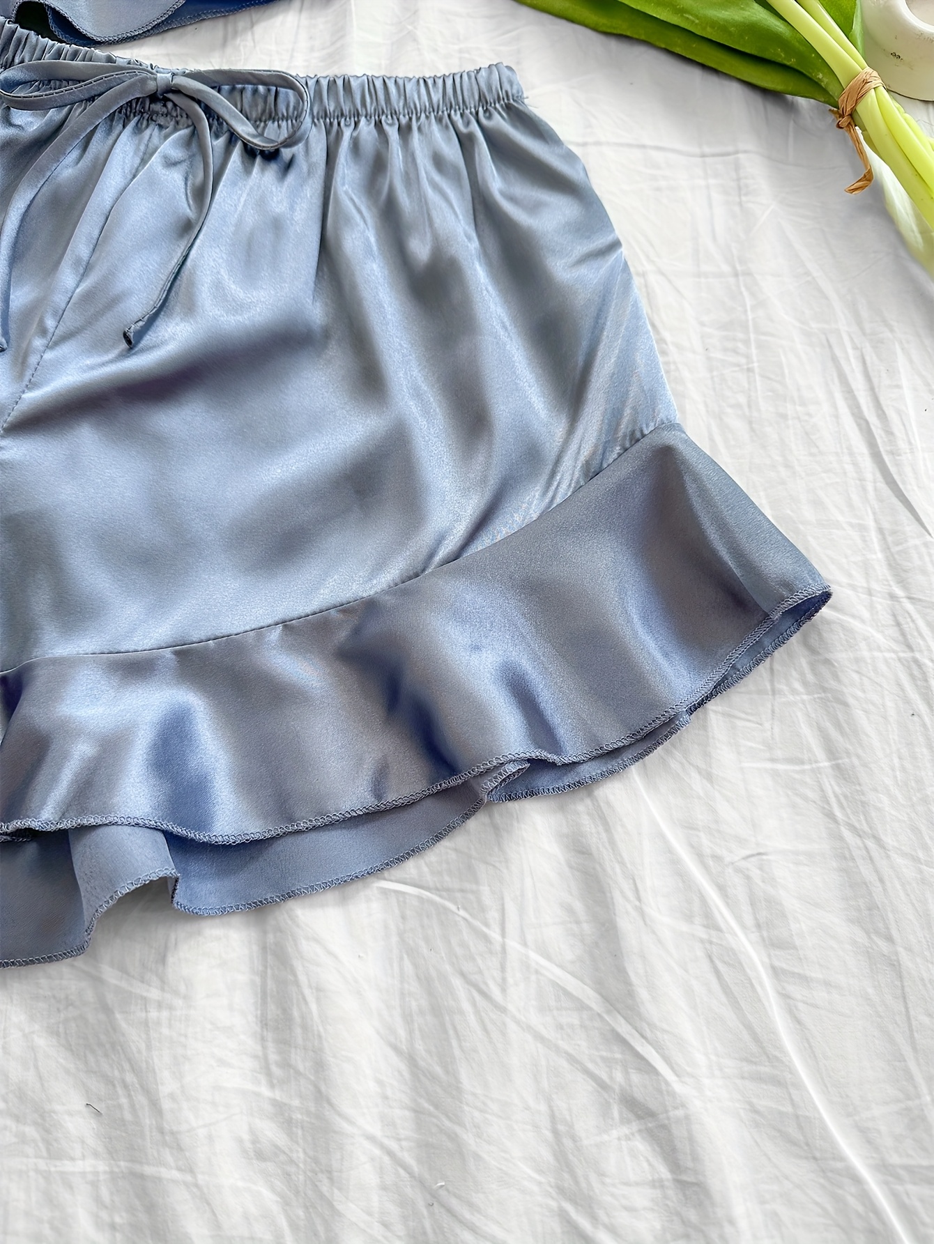 Women’s Solid Color Four-Season Camisole with Ruffle Shorts Pajama Set, 2pcs