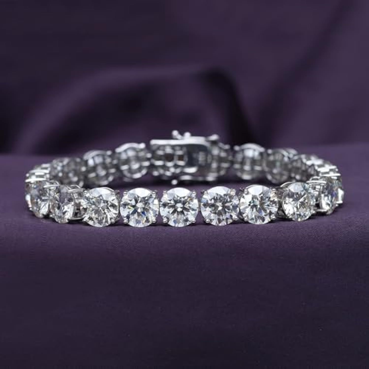 Massive Carat Presence: Boasting a staggering 68 to 84 carats (depending on length), this bracelet features a continuous row of 10mm round-cut laboratory stones. Each gem is faceted to maximize fire and scintillation, delivering an explosive light show with every movement.