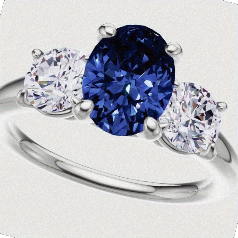 Symmetrical 3-Stone Design: Balanced with two brilliant-cut accent gems that frame the central sapphire, creating a tapered look that flatters the finger.