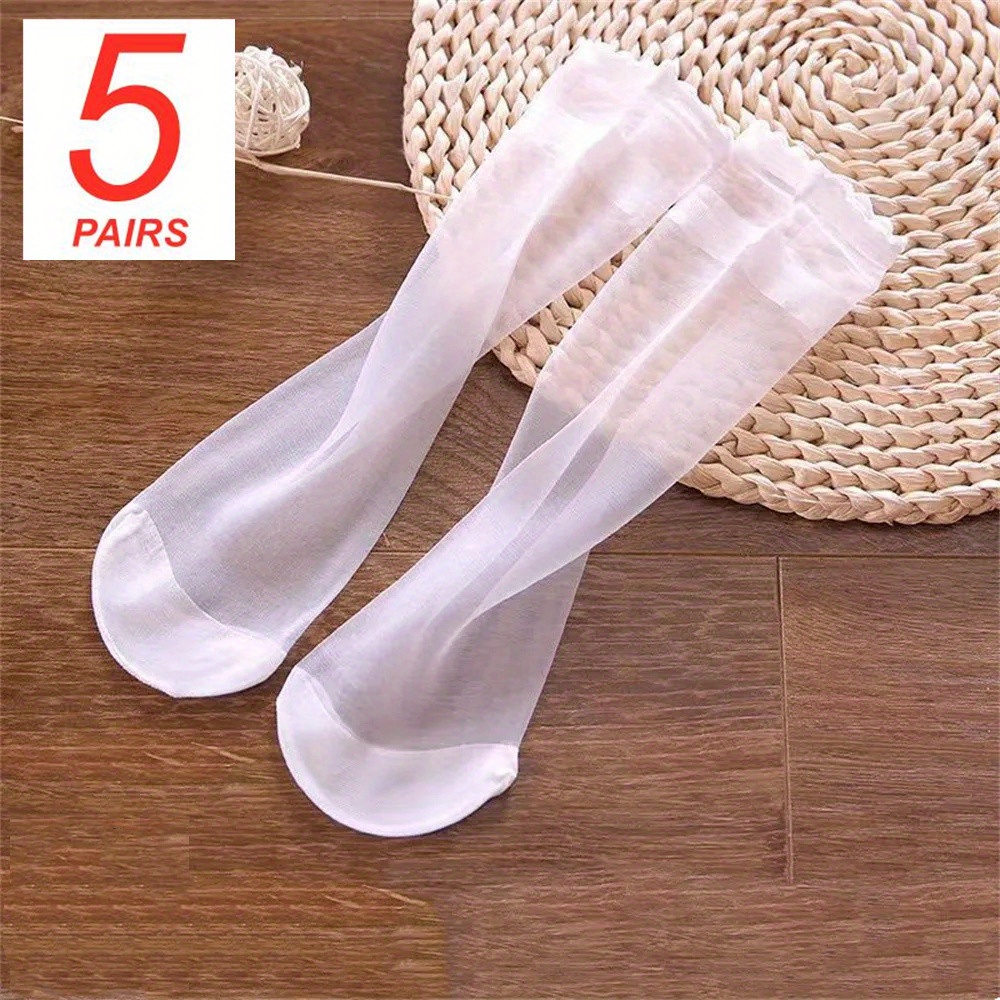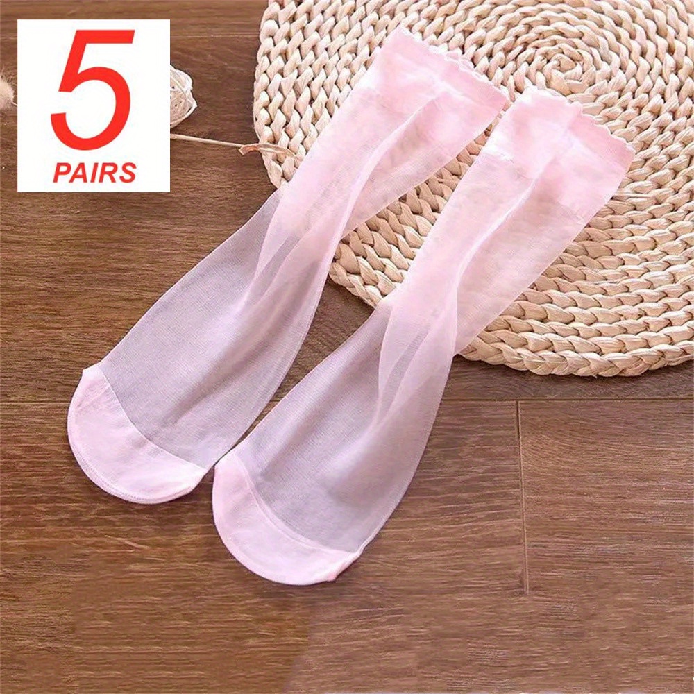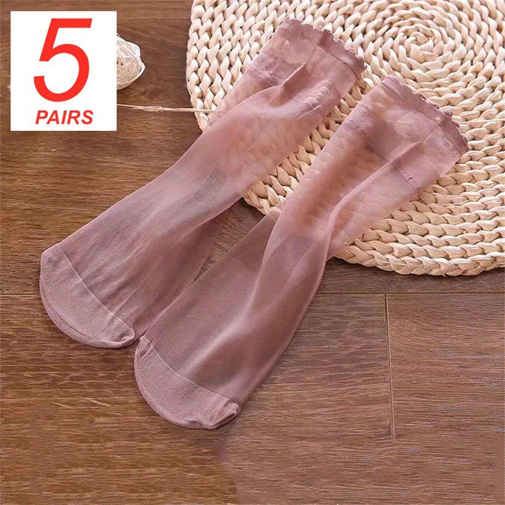 Breathable Minimalism: The Summer Essential Mid-Tube Collection Refresh your daily rotation with our 5-Pair Solid Color Thin Stocking Set, specifically engineered for the high temperatures of Spring and Summer. These mid-tube socks are crafted from a specialized ultra-fine transparent knit that provides a sleek, “barely-there” aesthetic while maintaining the structural integrity of a casual sock. The solid-color palette is designed for maximum versatility, allowing for a seamless transition from professional office wear to outdoor weekend adventures.