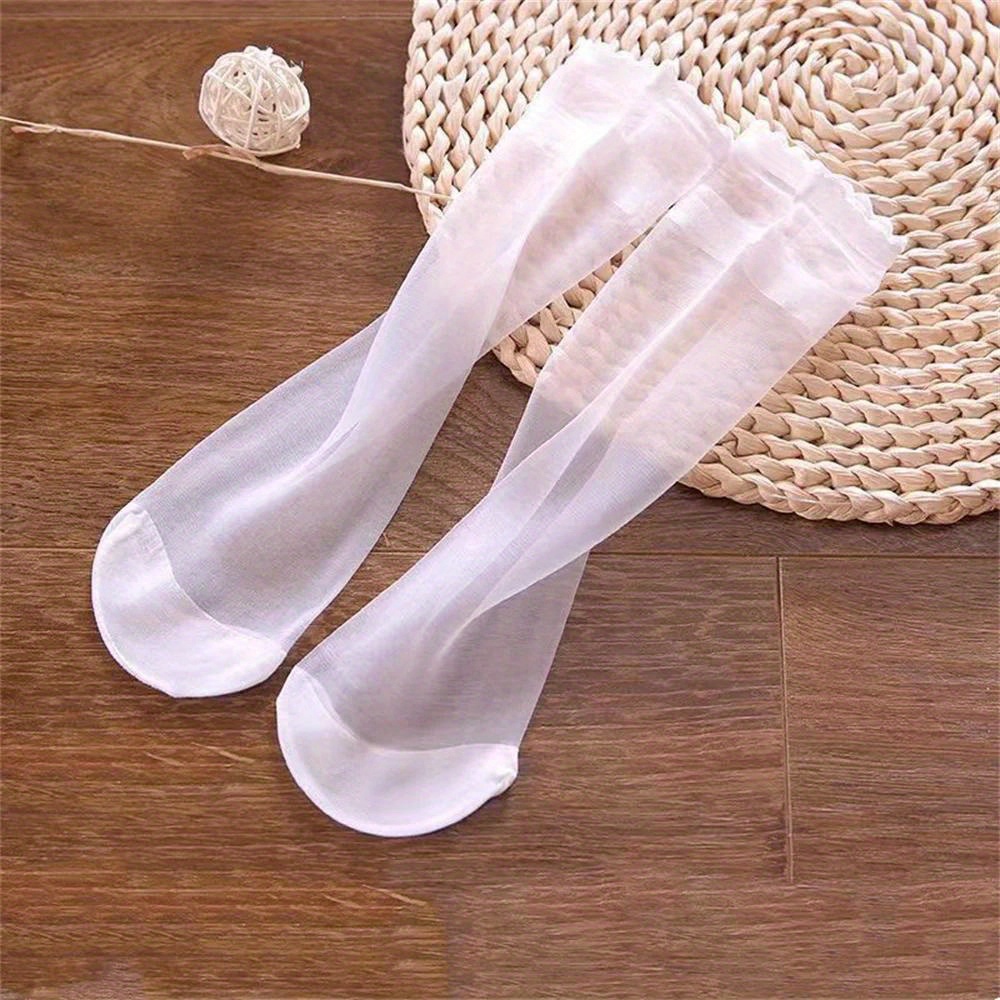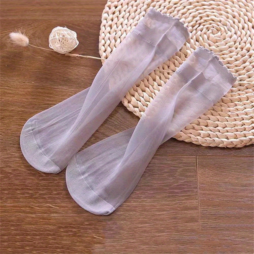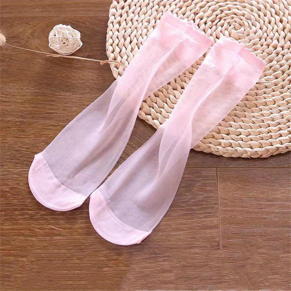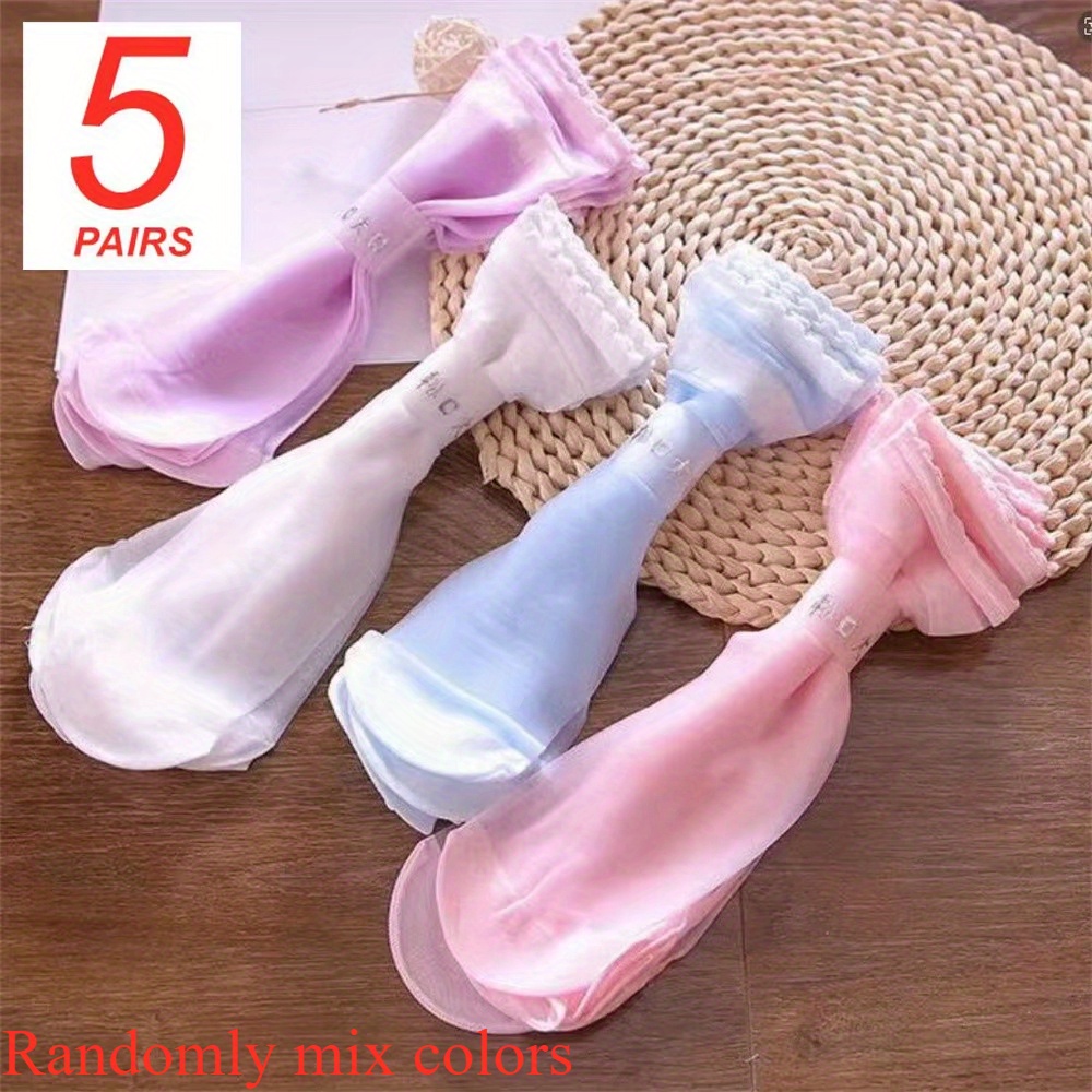 Breathable Minimalism: The Summer Essential Mid-Tube Collection Refresh your daily rotation with our 5-Pair Solid Color Thin Stocking Set, specifically engineered for the high temperatures of Spring and Summer. These mid-tube socks are crafted from a specialized ultra-fine transparent knit that provides a sleek, “barely-there” aesthetic while maintaining the structural integrity of a casual sock. The solid-color palette is designed for maximum versatility, allowing for a seamless transition from professional office wear to outdoor weekend adventures.
