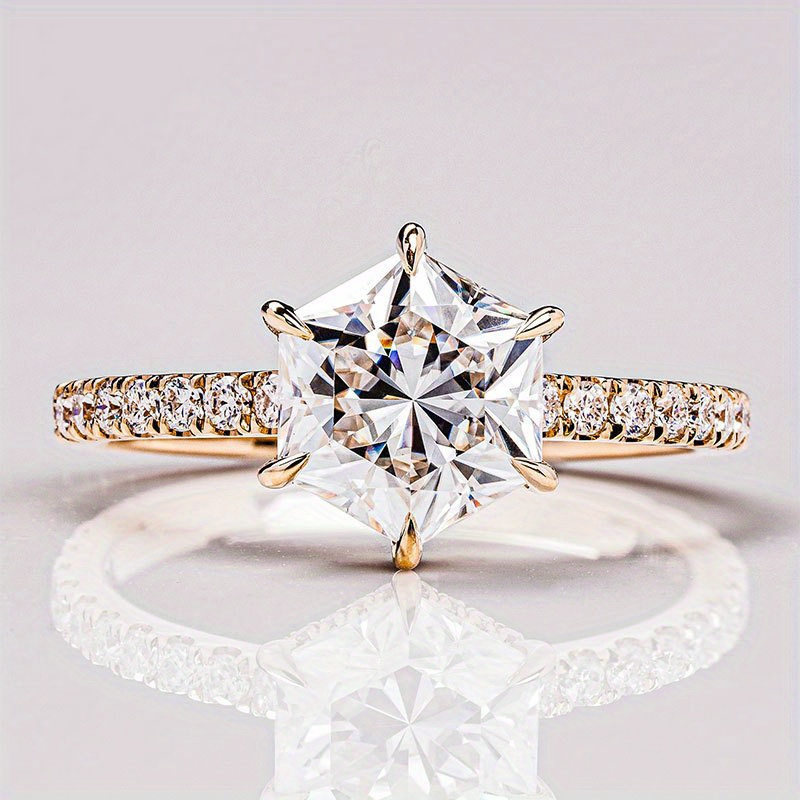 “There is a satisfying crispness to wearing a hexagonal ring. It feels more like a piece of wearable art than a traditional piece of jewelry. When you run your finger over the stone, you can feel the clean, deliberate edges of the facets. In the light, the 7mm Moissanite doesn’t just sparkle; it creates a rhythmic, patterned flash that feels incredibly modern. It’s a conversation starter—people always lean in to see the unique shape. Whether it’s being worn as a symbol of engagement or a personal fashion choice, it gives the wearer an air of ‘quiet confidence.’ It’s for the person who respects tradition but isn’t afraid to break the mold.”