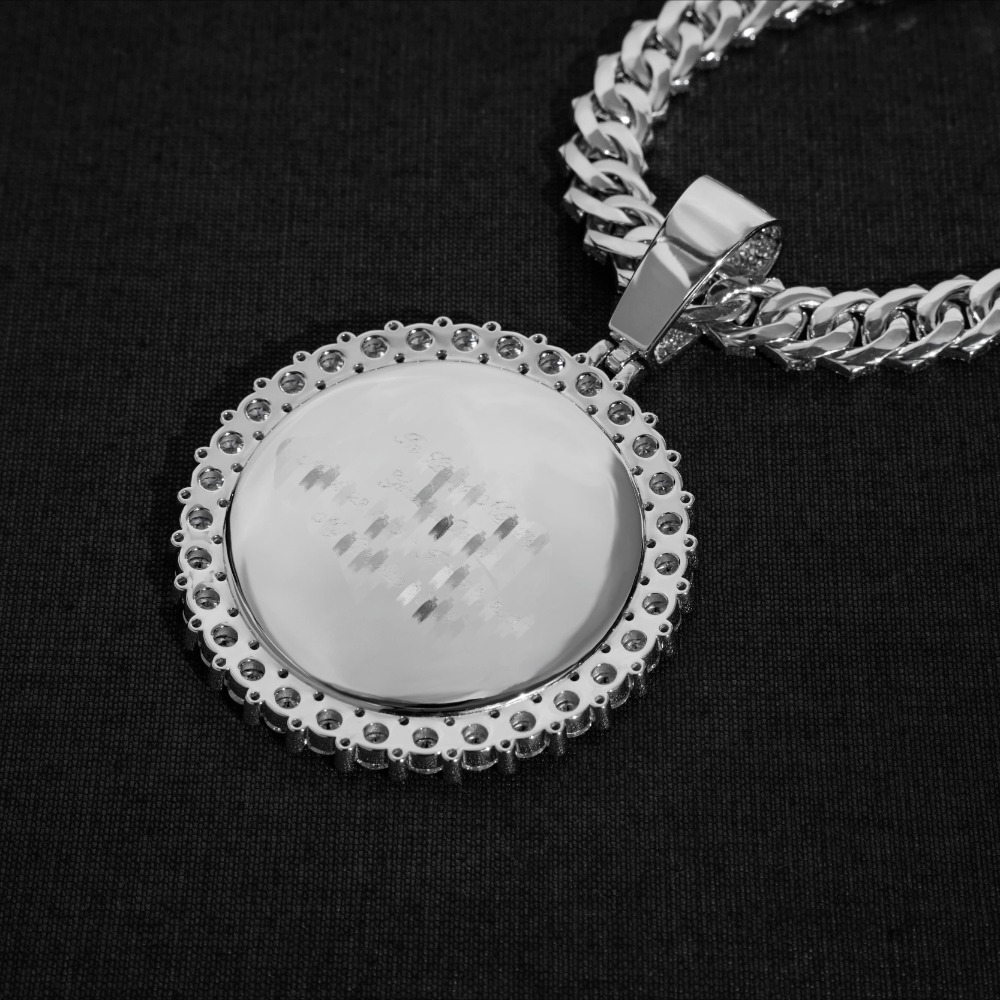 The 925 Silver Iced-Out Photo Memory Pendant is a high-specification custom jewelry piece built for longevity and maximum shimmer.