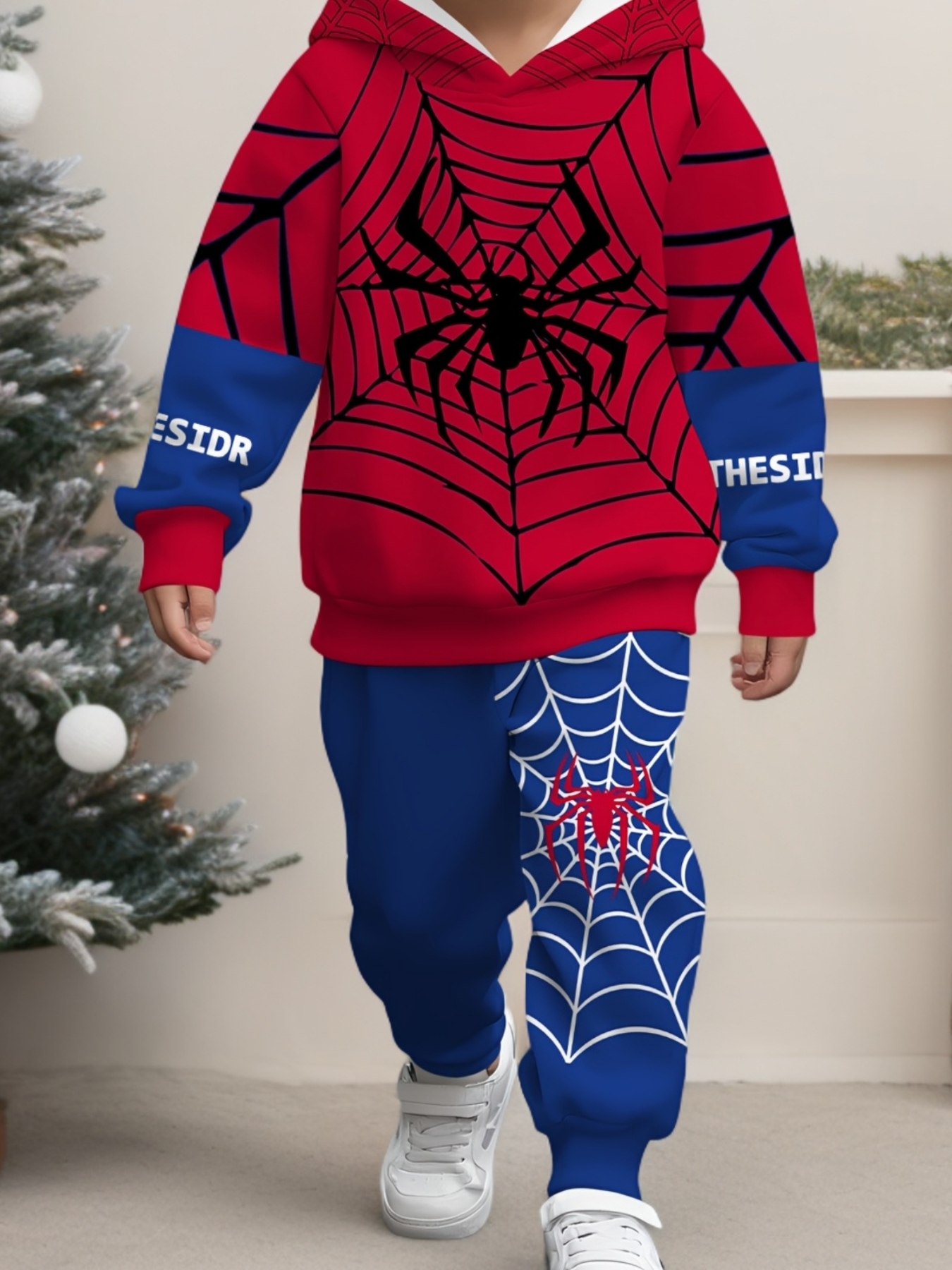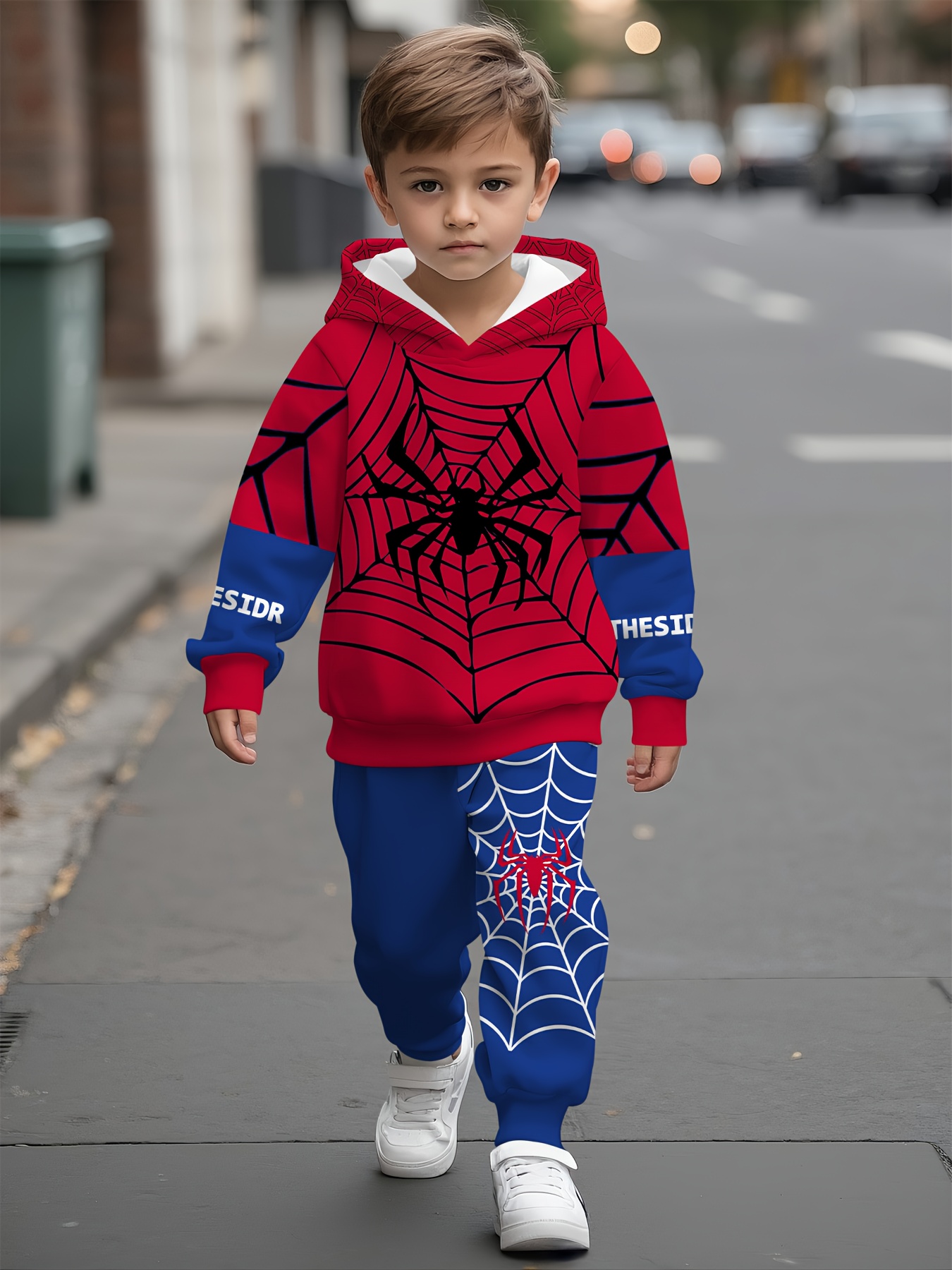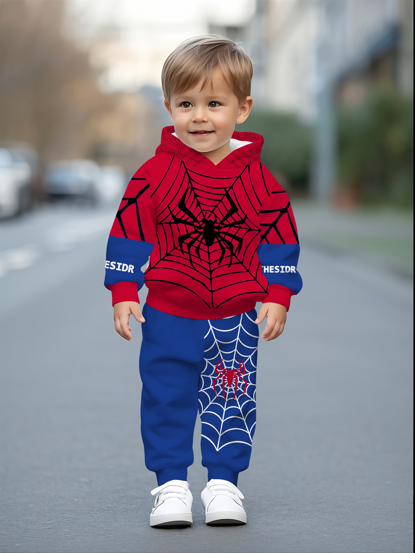 Hooded Sweatshirt Set for Baby Boys, Featuring a Cool Spider Print, Perfect for Comfortable Outdoor Sports And Leisure in Spring And Autumn, for Outdoor
