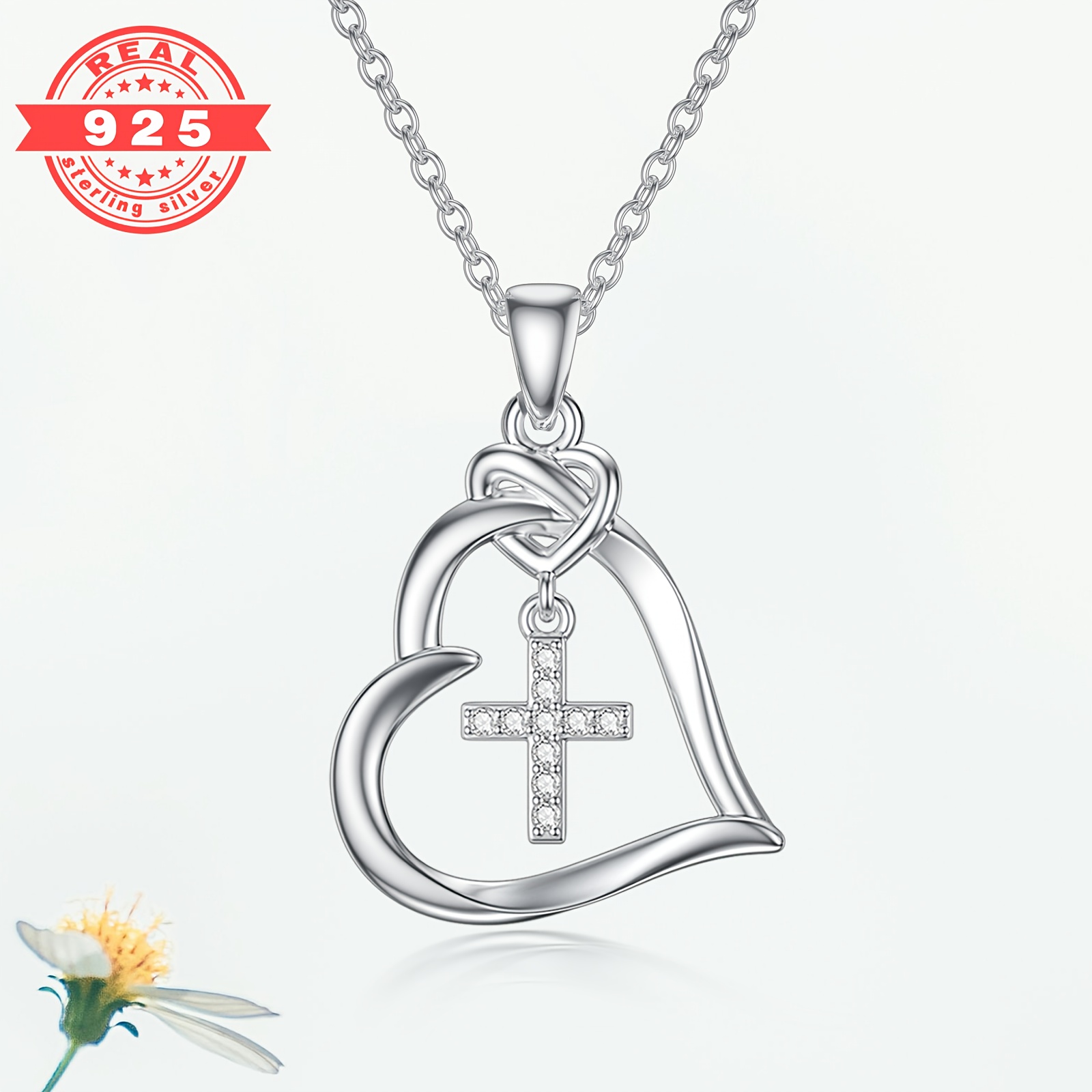 The Sterling Silver Heart Cross Lab-Diamond Necklace is a precision-crafted accessory that balances meaningful geometry with luxury materials.