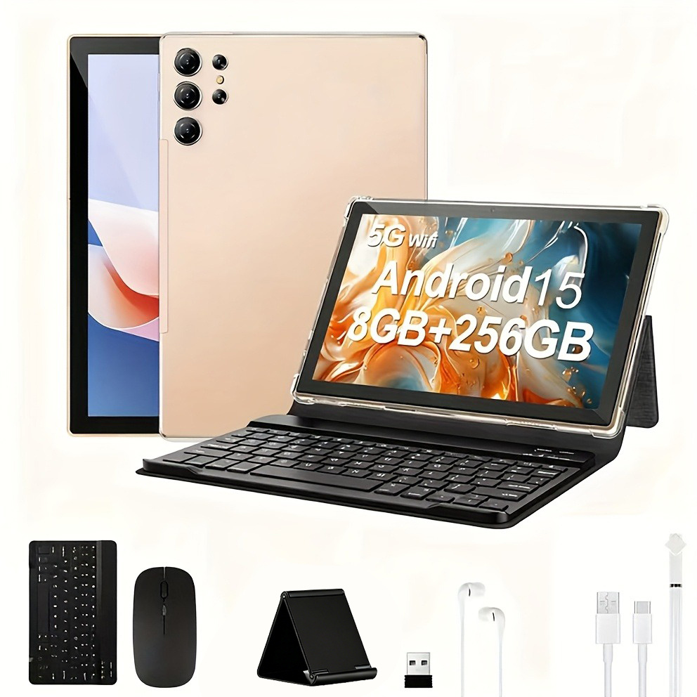 S25 Ultra 10.1 Inch Android 15 Tablet with Keyboard, 8GB RAM+256GB ROM, WiFi, IPS Screen, 2in 1 Tablets with Case, Mouse, Stylus (Without Adapter), Tablet, Pad, Tablet Android Tablet Pad, Full Hd Display, High Capacity Tablet, Long Battery Life. for Christmas