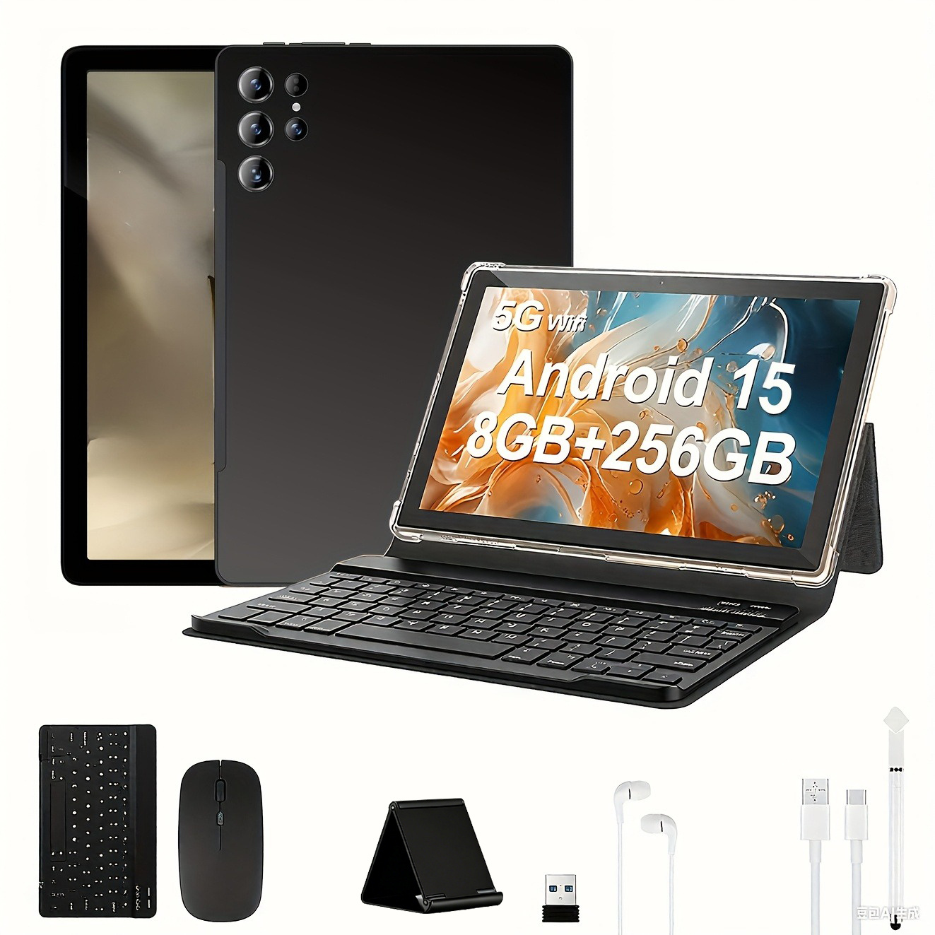 • Complete 2-in-1 Accessory Kit: Includes a Bluetooth keyboard, wireless mouse, protective folding case, and a precision stylus for note-taking or digital art.