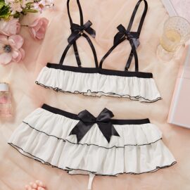 Stay-Up Thigh Ribbing: The transition from skirt to stocking is reinforced with high-tension elastic bands to ensure the set maintains its structural “lift” all night long.