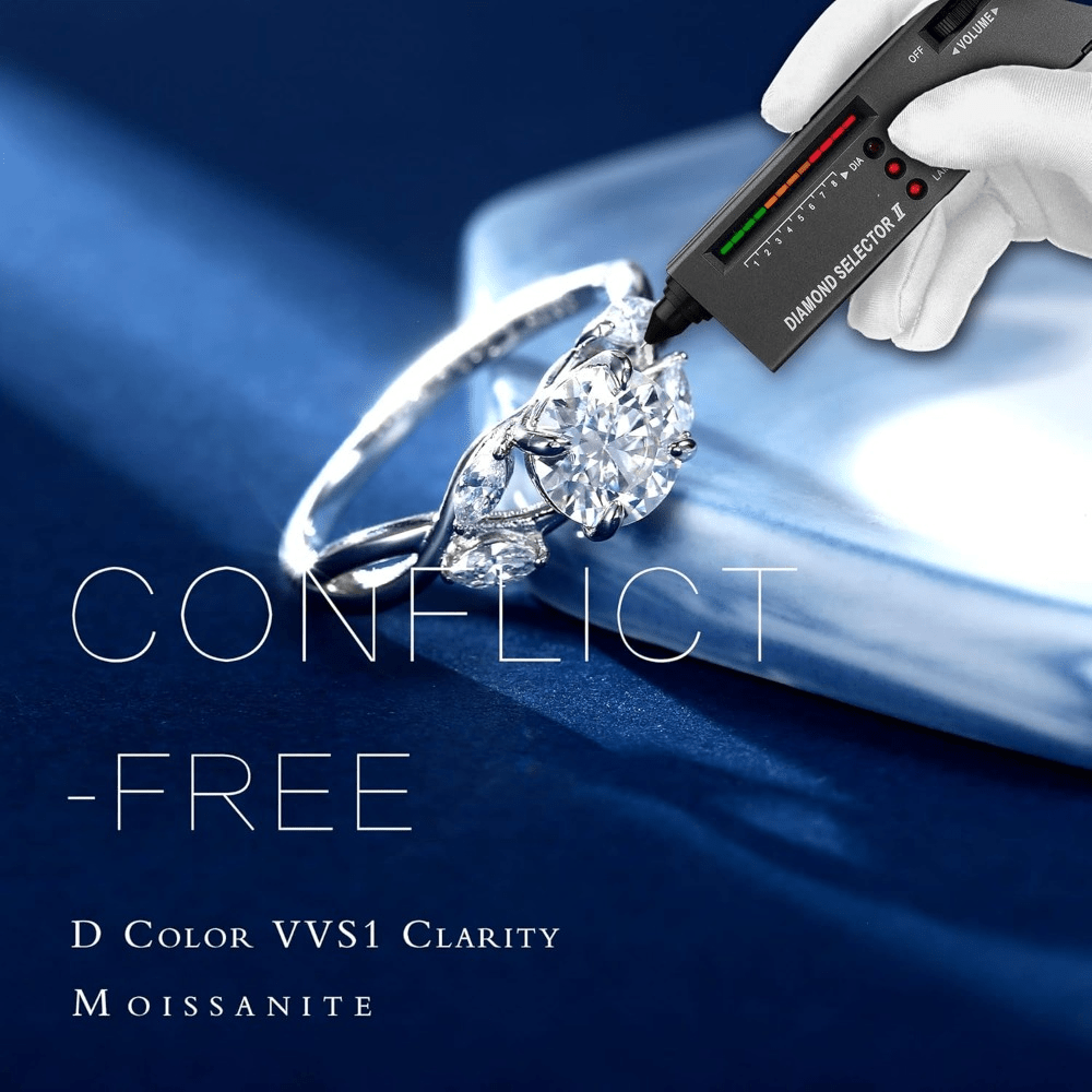 Nature-Inspired Setting: The central stone is held by four integrated prongs that emerge seamlessly from the silver vines, ensuring the 1.2ct Moissanite remains the shimmering focal point of the organic design.